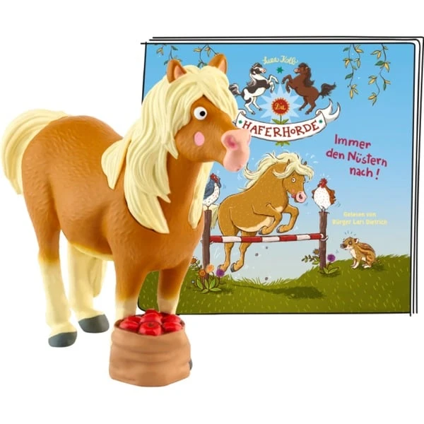 Ponyfans aufgepasst: Diese Tonie-Figur enthält ein tolles Abenteuer der Haferhorde. Dabei müssen sich die Superponys um einen überraschenden Gast auf dem Blümchenhof kümmern: Der kleine Frischling Freddy hat seine Familie verloren – natürlich müssen Schoko und Keks ihm helfen, sie sind schließlich Superrettungsponys! Dabei haben sie eigentlich gerade ganz andere Sorgen: Die Chefin hat beschlossen, ein Springturnier zu veranstalten und auch die Pferde vom Donnerheini einzuladen. Und dann wird auf einmal ausgerechnet der gemütliche Toni von großem Ehrgeiz gepackt. Teil drei der turbulenten Reihe um die Ponys Schoko, Keks und ihre Freunde vom Blümchenhof – ungekürzt gelesen von Bürger Lars Dietrich.Art.-Nr.: 1899596